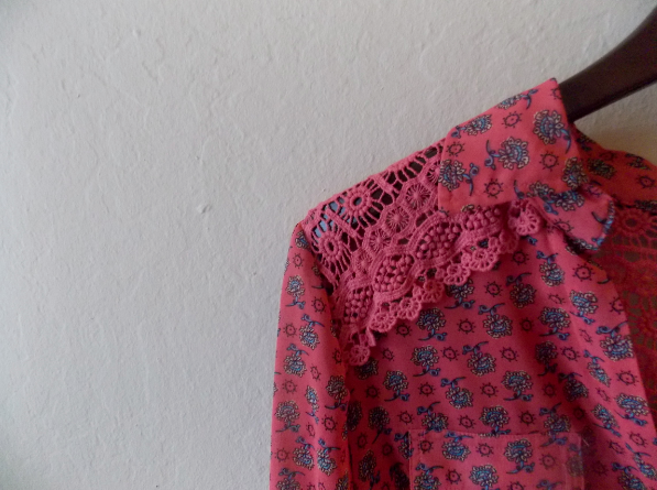 Vintage American Rag Chiffon Top- Size S Crochet detailing on shoulders Ties at bottom Floral/paisley pattern